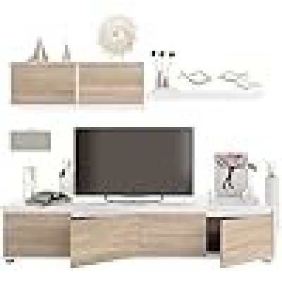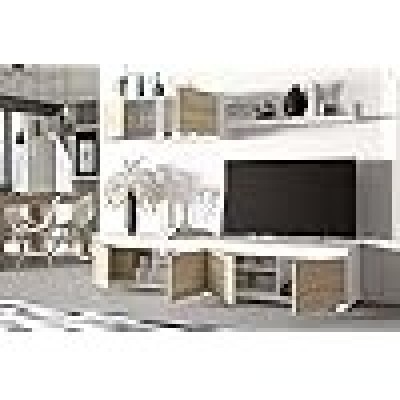 STRUTTURA E UTILIZZO - Mobile TV per salotto composto da una base porta televisione a quattro antine battenti, un pensile sospeso e mensola, internamente ripiani fissi - La scelta dei vari mobili che compongono questo set da salotto rendono il design di questo articolo d'arredamento moderno, funzionale e salvaspazio - Oltre al posizionamento della TV potrete personalizzare la parete con i vostri soprammobili preferiti che rimarranno in esposizione sugli scaffali - Lo spazio all'interno delle ante è perfetto per riporre in modo ordinato i vostri libri, documenti, oggetti decorativi o stoviglie - Set soggiorno perfetto per arredare un salotto, sala da pranzo oppure una stanza open space