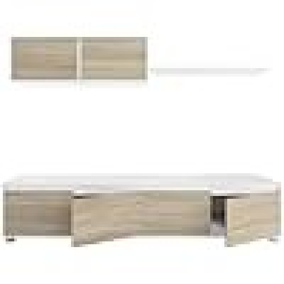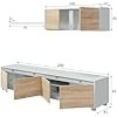 Dimensions en CM - Porte de télévision: Longueur: 200 Largeur: 41 Hauteur: 43 - Unité murale: 105x29h35 - étagère: 95x21h3