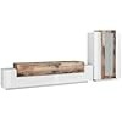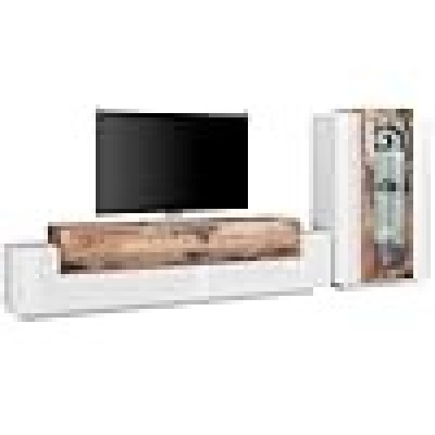STRUTTURA E UTILIZZO - Mobile per salotto composto da una base porta TV di colore bianco lucido con tre ante con apertura a ribalta e una mobile vetrina a muro: la vetrina pensile è dotata di tre ante battenti di cui quella centrale con dettaglio in vetro - Entrambi i moduli presentano un'anta con dettaglio di colore grigio acero - La vetrina contiene al suo interno sette ripiani di cui tre in vetro temperato con illuminazione - Sistema di illuminazione LED di colore bianco integrato - A seconda delle vostre necessità potrete posizionare il modulo pensile nella posizione che preferite - Lo spazio all'interno delle ante è perfetto per riporre in modo ordinato oggetti o stoviglie in