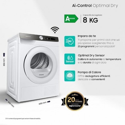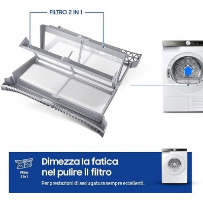 Samsung Dryer Ai Control, DV80T5220TT / S3, 8 kg, pompe à chaleur, wifi, capteur sec optimal, F