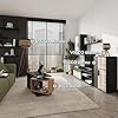 • Le mur de télévision propose des étagères ouvertes et fermées et un grand espace de stockage, idéal pour le salon. Un mobilier fonctionnel avec des caractéristiques pratiques.