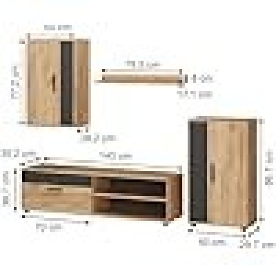 Vicco Wall Berno, chêne doré / anthracite, ensemble de 4