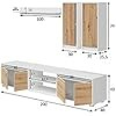 Dimensions en CM - base de base de télévision: 200x40h43 - Modules en suspension: 30x25.5h74 - étagère: 100x18h13