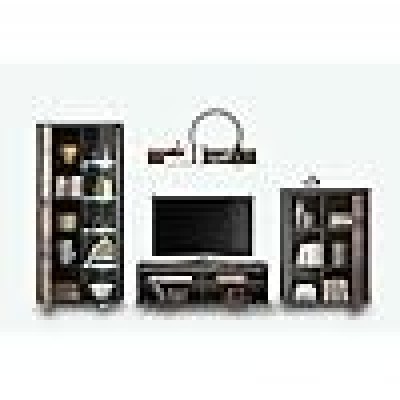 L'armoire télévisée se compose d'une lumière qui cache 2 chambres et deux niches ouvertes au-dessus du tiroir. La garde-robe est divisée en deux compartiments, à gauche avec la porte en bois et à droite, une porte en verre se balance toujours; Chaque partie contient 4 étagères. Le plus petit casier, il est également divisé en deux parties, à droite avec la porte swing en bois, tandis que à gauche est ouverte; Chaque compartiment a 2 étagères.