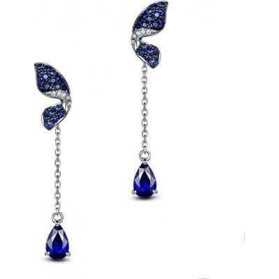 Maison > Boucles d'oreilles en or blanc Anazoz 18K, boucles d'oreilles en papillon bleu argenté avec de l'eau