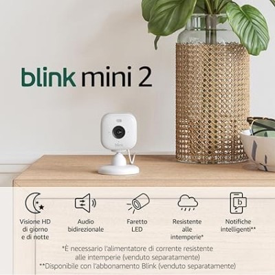 • Blink Mini 2 est notre caméra de sécurité intelligente, plug-in et de deuxième génération, qui vous permet de voir tout ce qui se passe à la maison, directement à partir de votre smartphone.
