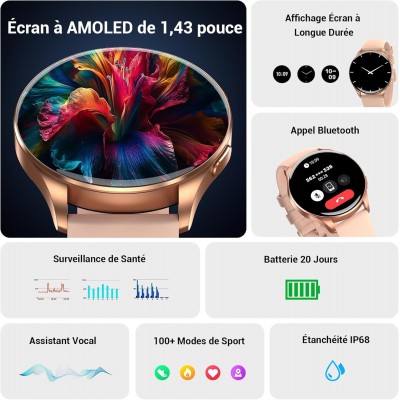 Isowodo Smartwatch femme, 1,45 "Tracker Fitness Tracker avec des appels / réponse Bluetoot