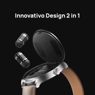 Smartwatch e cuffie, 2 in 1】La cover pop-up si apre facendo una leggera pressione sul tasto frontale integrato nella cassa, resa stabile e funzionale grazie all`albero rotante nel meccanismo di apertura ed ai primi supporti ad attrazione magnetica che permettono di interconnettere gli auricolari con lo smartwatch, raddoppiandone così l'esperienza d'uso e la praticità.