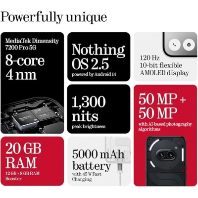 Rien de téléphone (2a) 12 + 256 Go - Smartphone avec rien OS 2.5 - noir