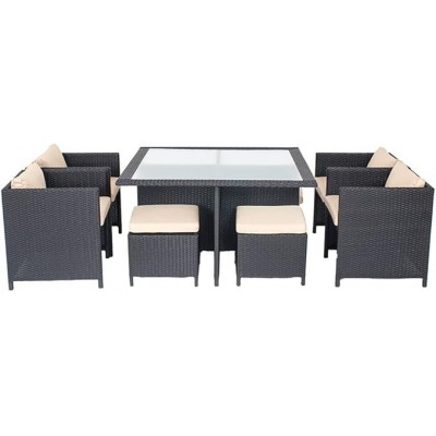 Maison > Table à manger KCCUZO et chaises extérieures en rotin synthétique, combinaison de neuf pièces, meubl